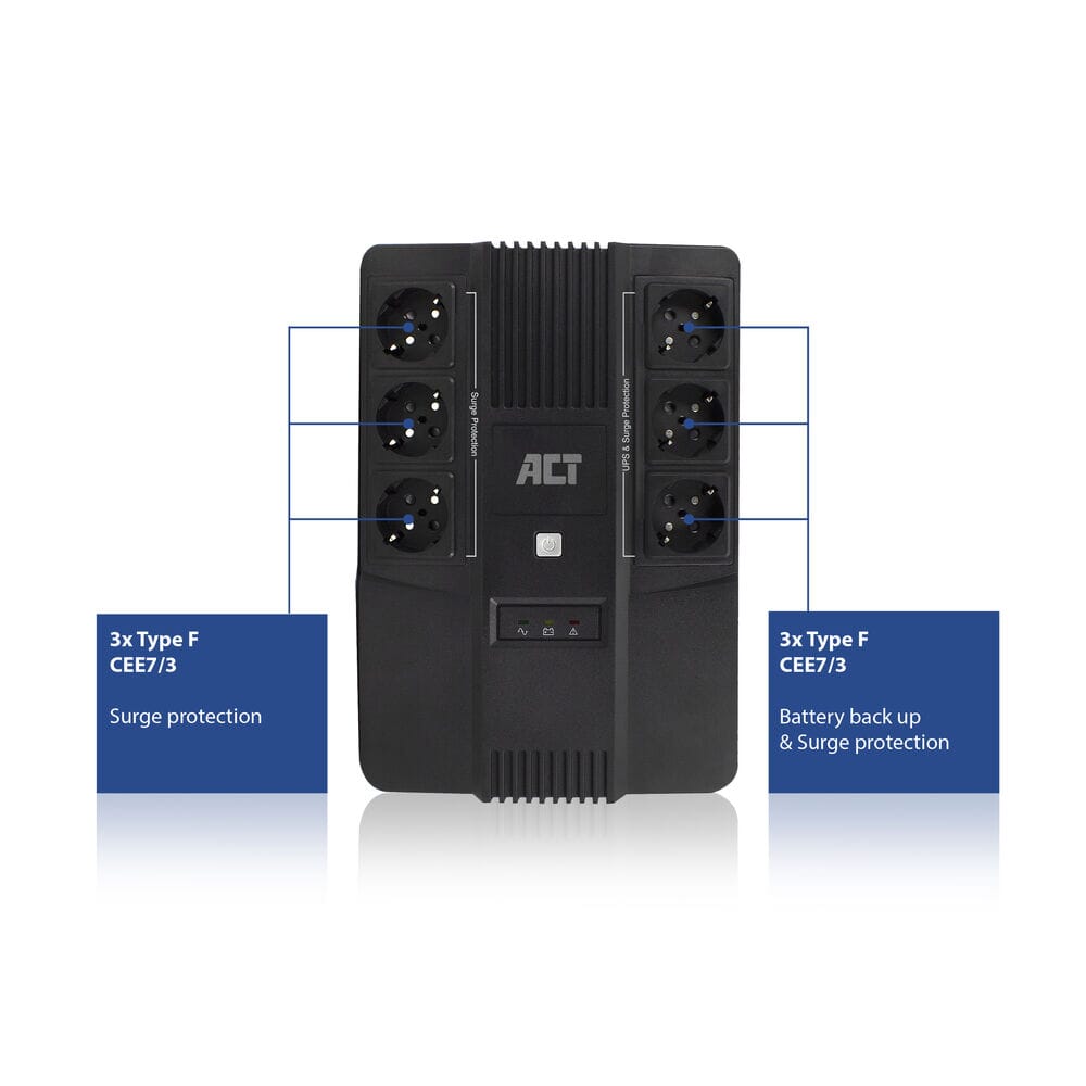 ACT UPS, 600VA, 6x Type F outlet, 1x IEC C14 input, 230V AVRCompatible met