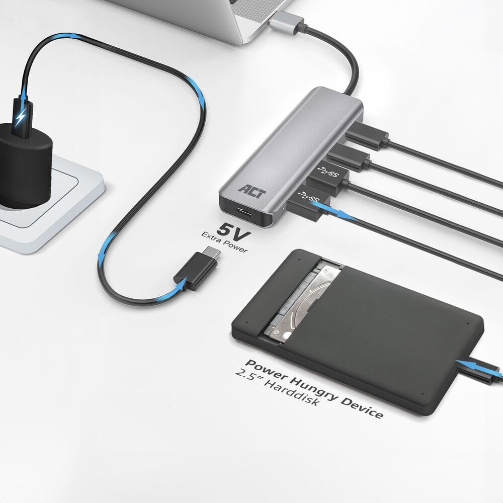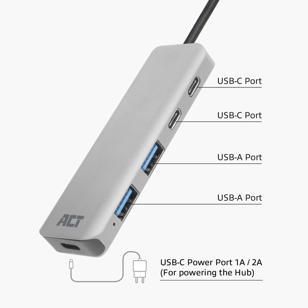 ACT USB-A hub 3.0, 2x USB-A, 2x USB-CCompatible met