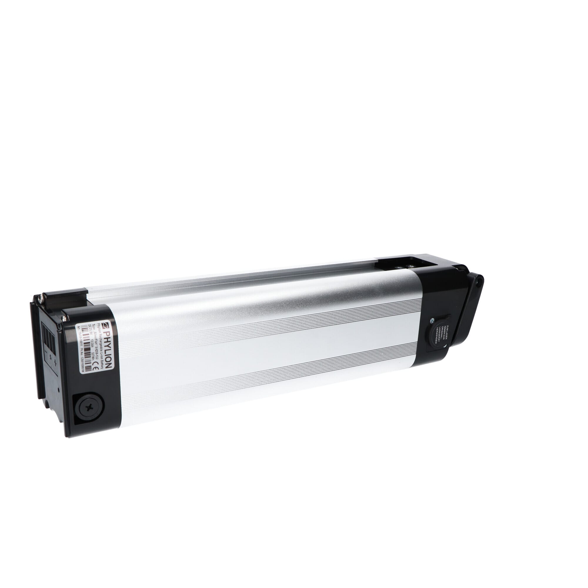 De Phylion XH259-10J SilverFish fietsaccu heeft een vermogen van 288 Wh, een capaciteit van 12 Ampère en is voorzien van een output voltage van 24 Volt.