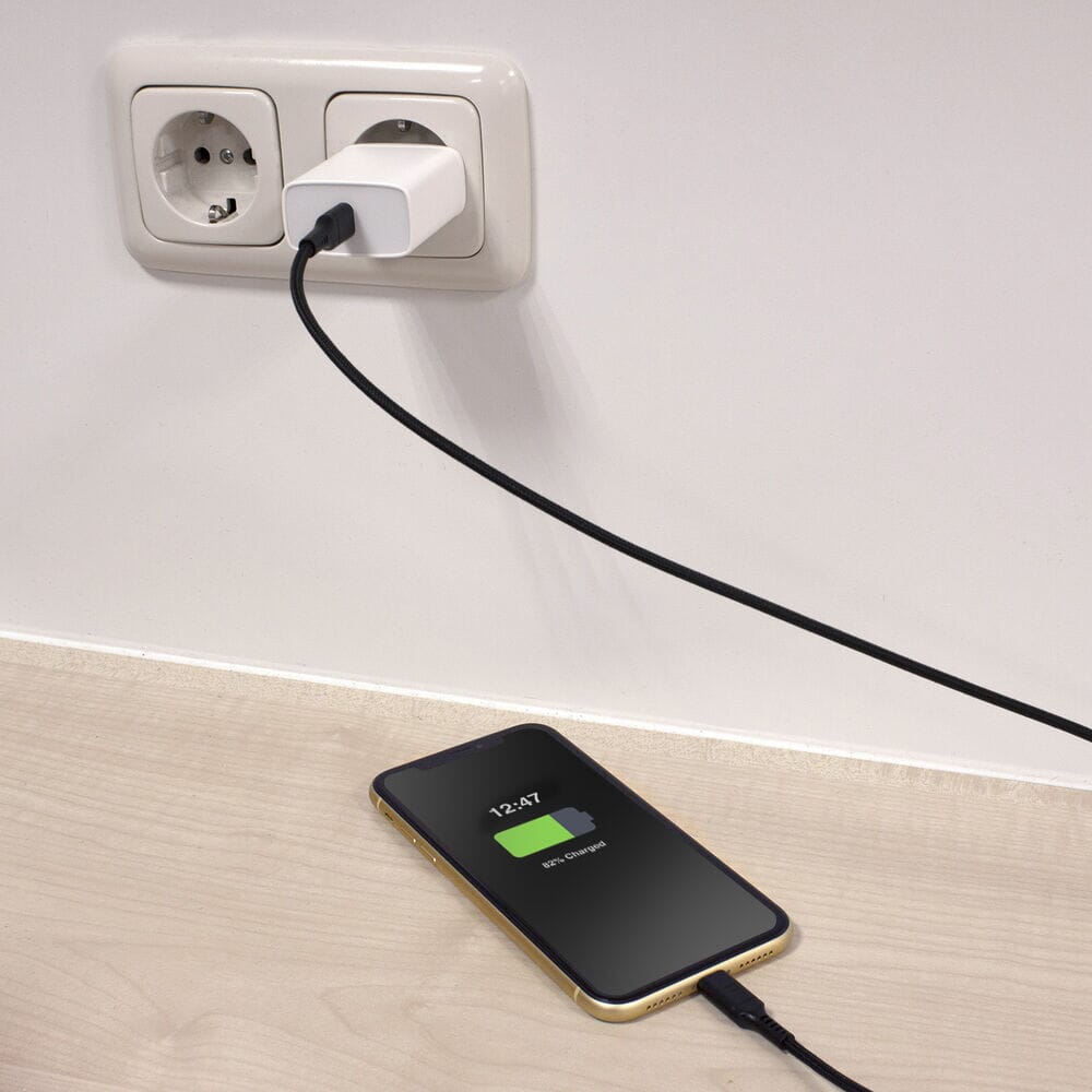 ACT USB A naar Lightning laad- en datakabel 1m nylon - zwartCompatible met